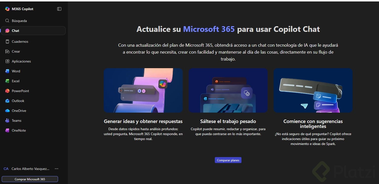 Microsoft Copilot usa modelos de OpenAI (GPT-4 y GPT-5) y ofrece un entorno que brilla por su integración con la suite de Microsoft. Los “agentes” aquí son chats especializados con un prompt inicial, no la definición formal de agente autónomo. Aun así, permiten estandarizar instrucciones, sumar conocimiento y habilitar herramientas.