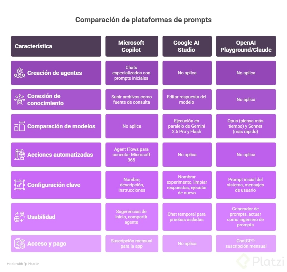 Domina Microsoft Copilot, Copilot Studio, Google AI Studio, OpenAI Playground y Claude para llevar tus prompts a otro nivel. Aquí verás cómo crear agentes personalizados, conectar conocimiento, comparar modelos y activar acciones automatizadas que escalan en entornos empresariales, sin salirte de buenas prácticas de configuración.