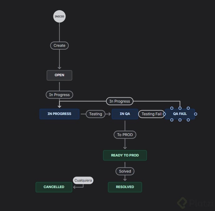 Es importante notar que con el nuevo flujo de trabajo, las restricciones de movimiento entre estados se aplican automáticamente. Por ejemplo, una tarea en estado "In Progress" solo podrá moverse a "QA" o "Cancelado", pero no podrá volver a "To Do".