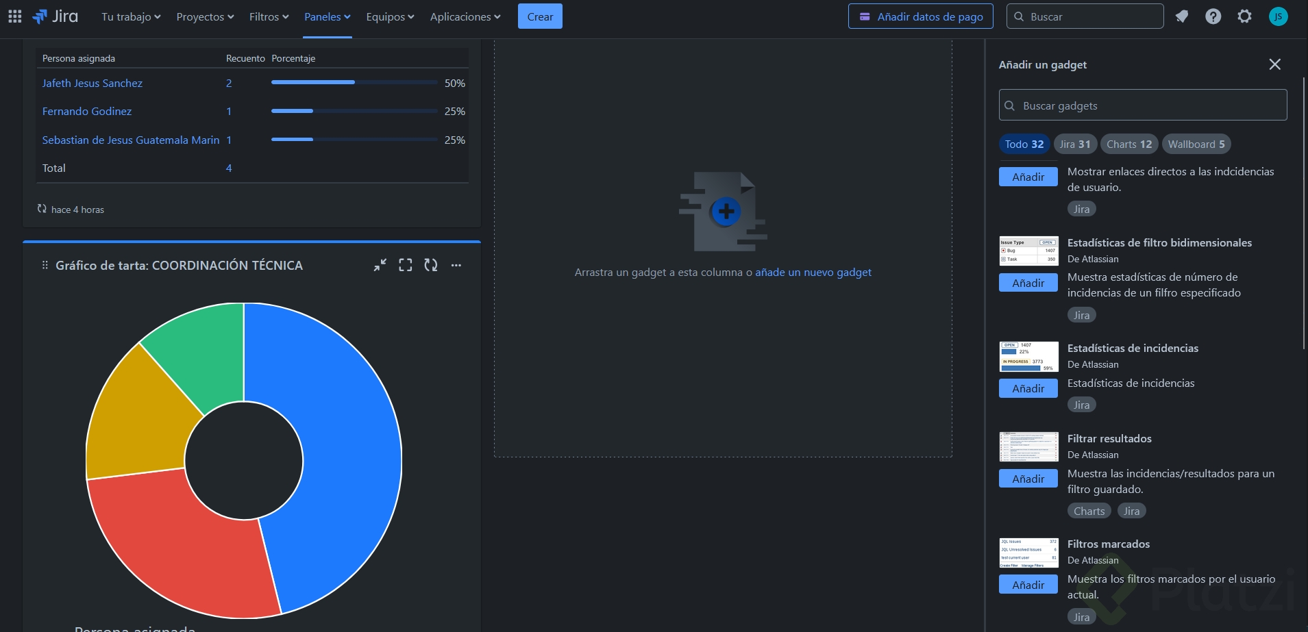 Estos son solo algunos ejemplos, pero Jira ofrece una amplia variedad de widgets que puedes explorar y añadir según las necesidades específicas de tu proyecto y equipo.