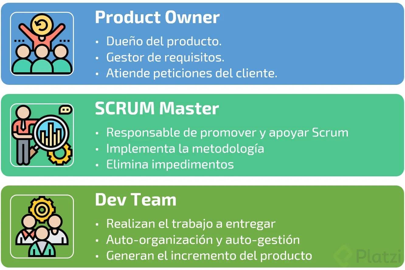 Scrum define tres roles principales, cada uno con responsabilidades específicas que se reflejan en los permisos y asignaciones dentro de Jira: