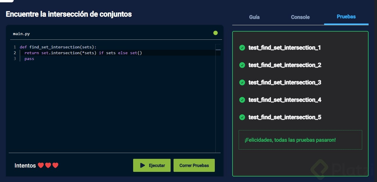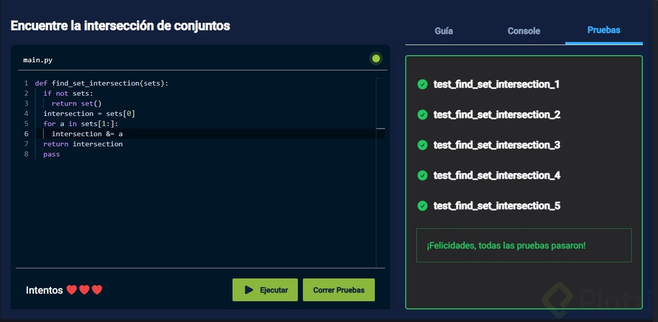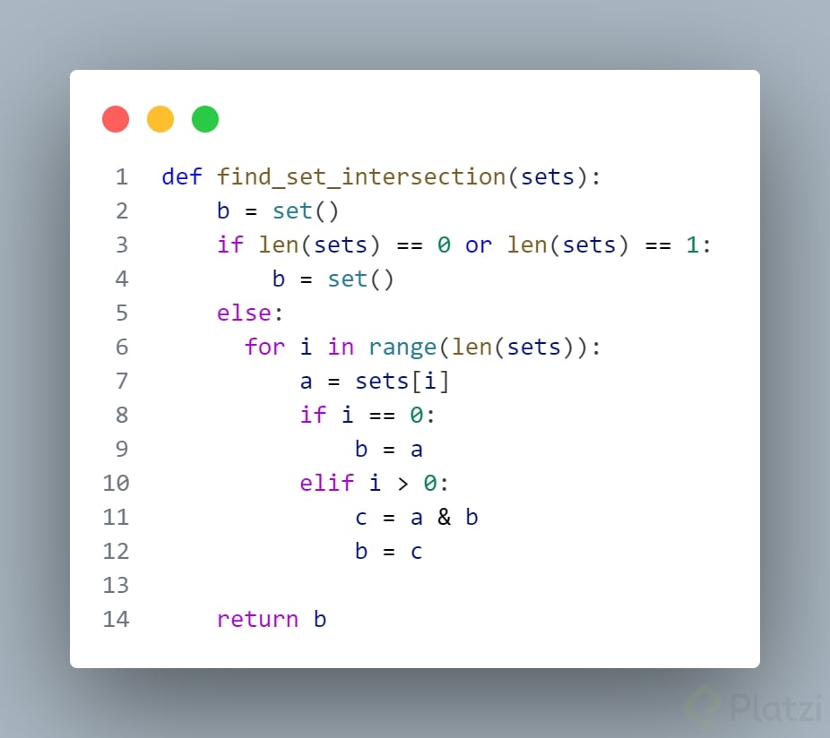 Encuentre la intersección de conjuntos