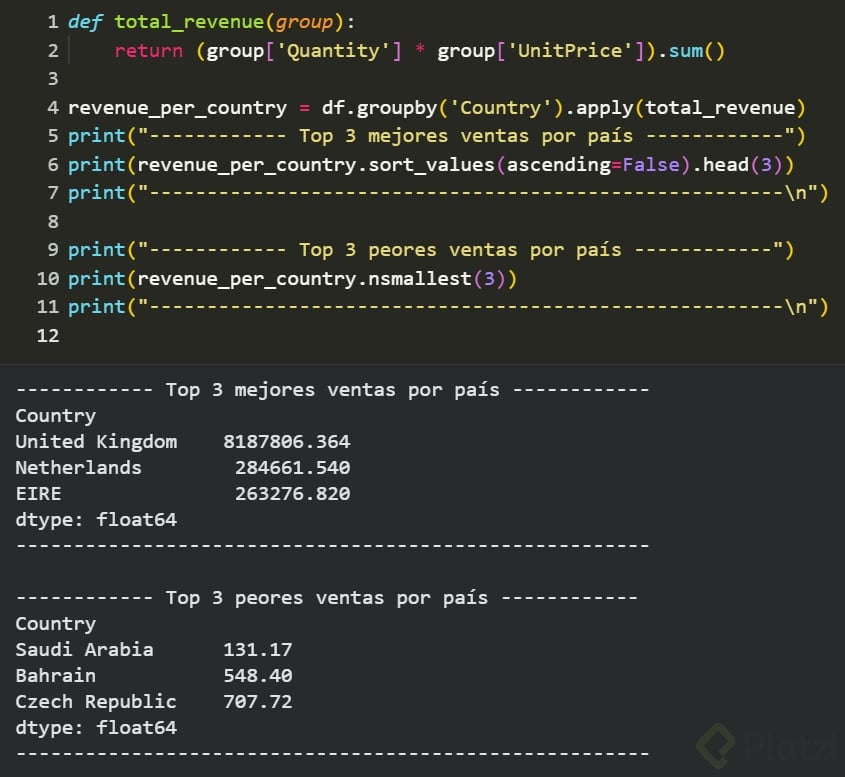Como reto final, intenta determinar cuáles son los tres mejores y peores países en cuanto a ventas totales utilizando Pandas. Los resultados te sorprenderán y te ayudarán a entender mejor el poder del análisis de datos: