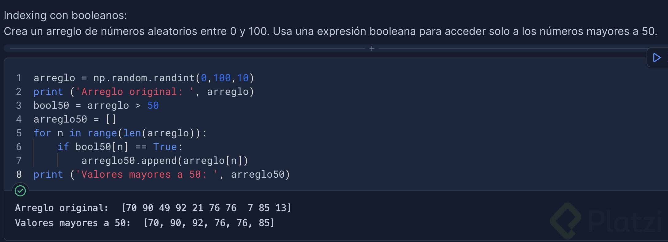 - Crea un arreglo de números aleatorios entre 0 y 100. Usa una expresión booleana para acceder solo a los números mayores a 50.
