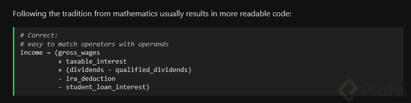 Identación de cuatro espacios: nunca tabuladores.