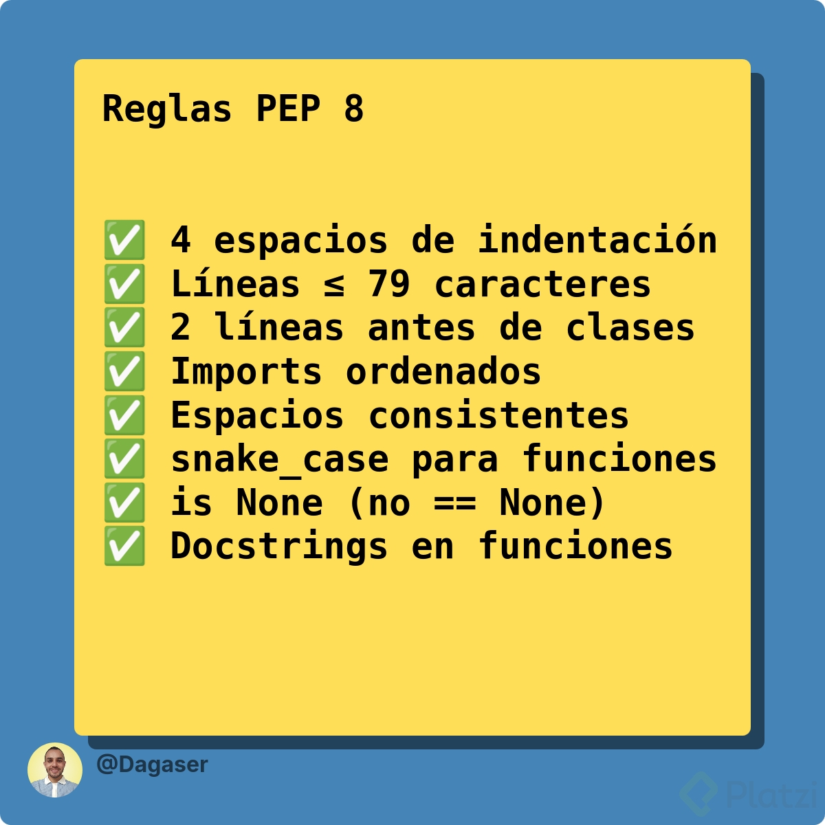 ¿Te animas a compartir tu regla favorita de PEP 8 y cómo la aplicas? Deja tu comentario y conversa con alguien más para mejorar entre todos.