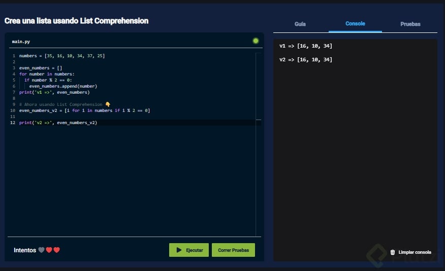 Playgrounds: Crea una lista usando List Comprehension