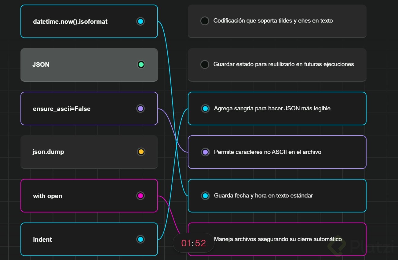 - Usa UTF-8 y ensure_ascii=False para textos en español.