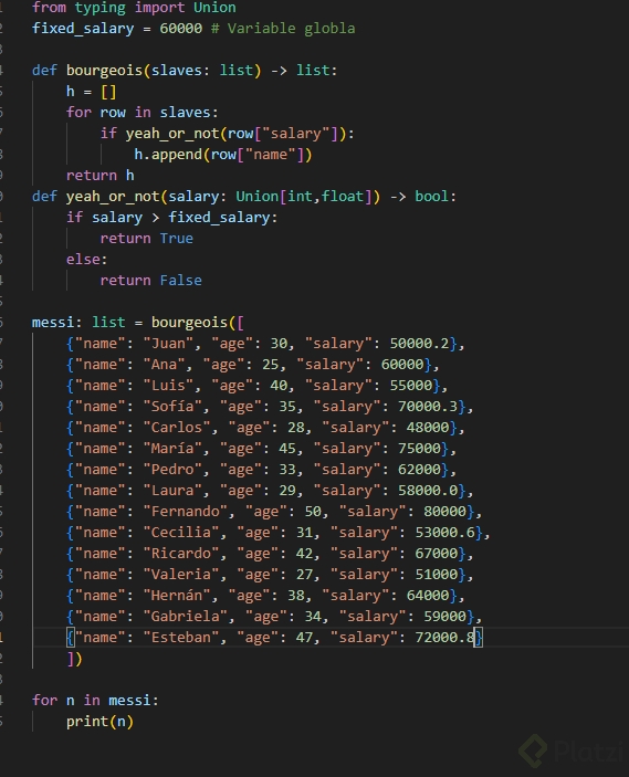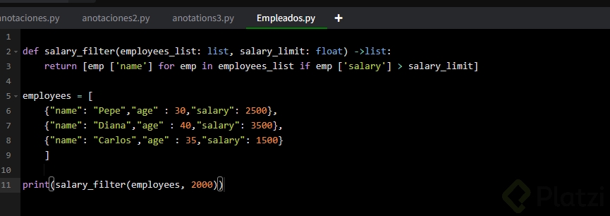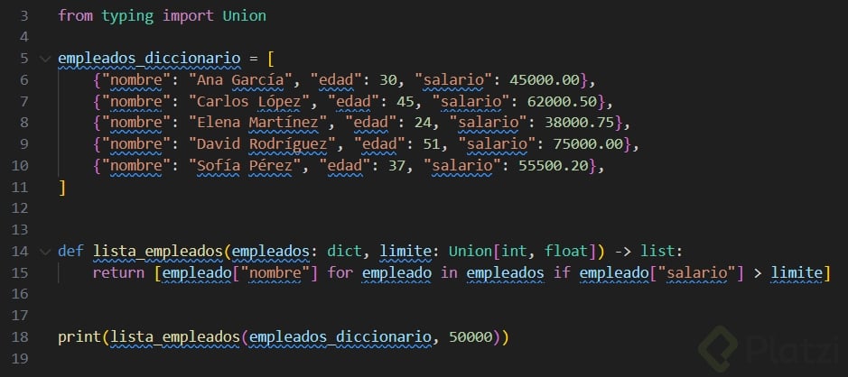 Te animamos a aplicar estos conceptos creando una función que procese diccionarios de empleados y los filtre según el salario. Experimenta con diferentes tipos de anotaciones y comparte tus resultados en los comentarios.