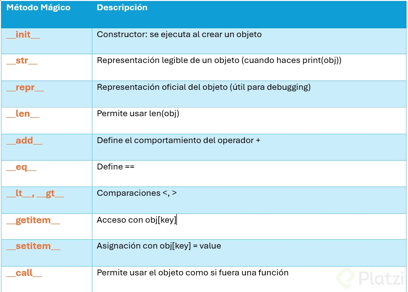 Por ejemplo, __lt__ se puede definir para que un objeto sea considerado menor que otro si tiene menor edad, lo que nos brinda flexibilidad al ordenar objetos.