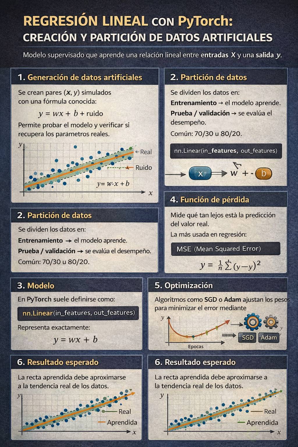 Comencemos con algo básico pero esencial: generar datos artificiales que nos ayudarán a entrenar nuestro modelo. Usaremos PyTorch, una biblioteca famosa por su versatilidad en tareas de machine learning.