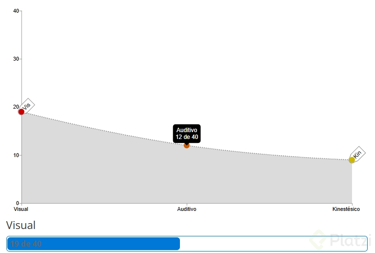 Auditivo 15 de 40 Kinestésico 14 de 40 Visual 11 de 40