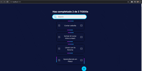 Una de las grandes ventajas de React, es que podemos utilizar los lógicos && y || para jugar con nuestras clases muy fácilmente, y dar estilos dependiendo de la clase que esté activa, esto lo aplicamos cuando está completado o no nuestro TODO.