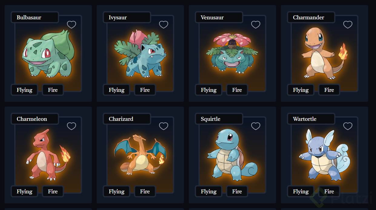 Pasar datos a los componentes: Asegúrate de que cada tarjeta (componente) de Pokémon reciba el nombre correcto: