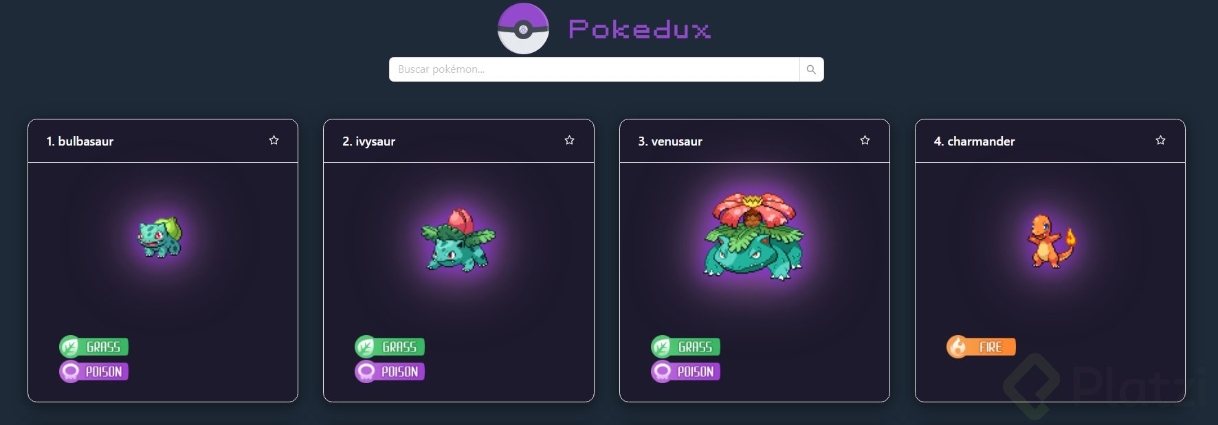 PokémonList: Nos dirigimos aPokémonListpara asegurarnos de que el componentePokémonCardreciba ahora la imagen correcta, utilizando el pathPokémon.sprites.frontDefault. -