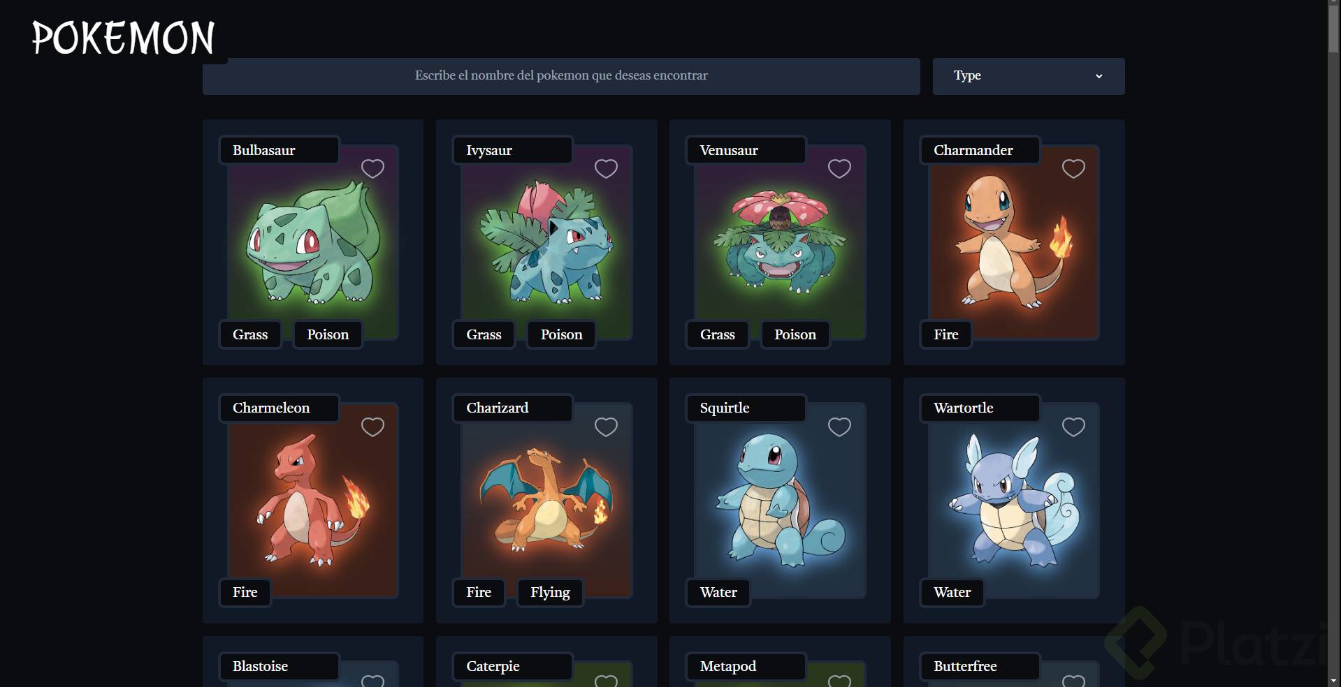 Verificar visualización de elementos: Comprueba que los pokémones se cargan correctamente y que las acciones (como marcar favoritos) funcionan bien.