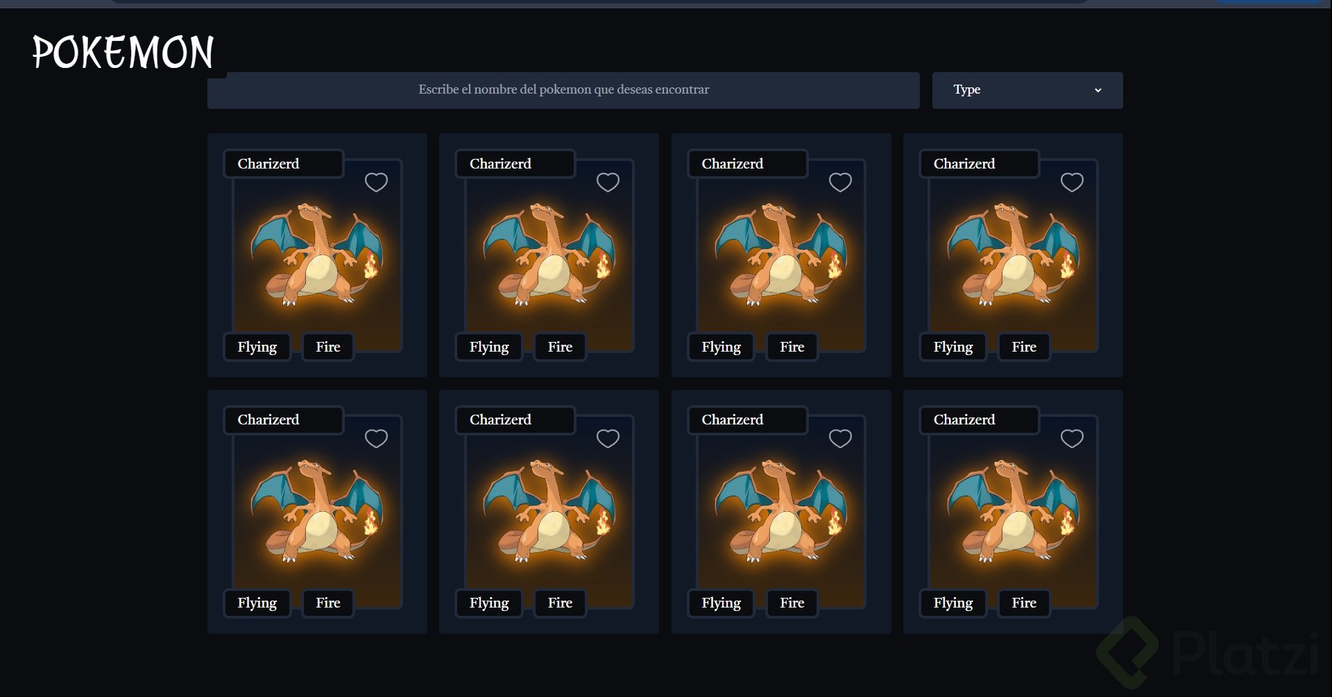 ¡Vamos a construir ahora la carta de cada Pokémon! Esto será fundamental para mostrar la información relevante.