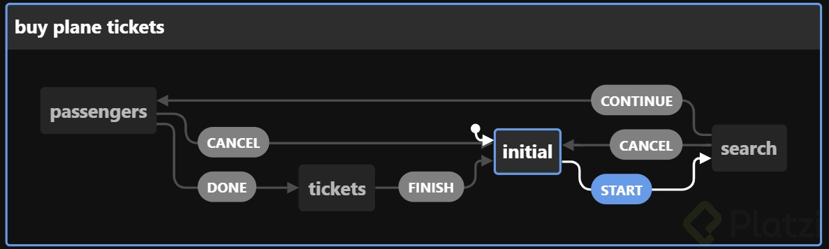 Crear una máquina de estados ofrece una estructura clara y organizada para gestionar los flujos complejos de una aplicación. En este ejemplo, desarrollaremos un flujo para la reserva de tickets en una aerolínea. Aquí te mostramos cómo hacerlo de manera efectiva utilizando el visualizer de XState.