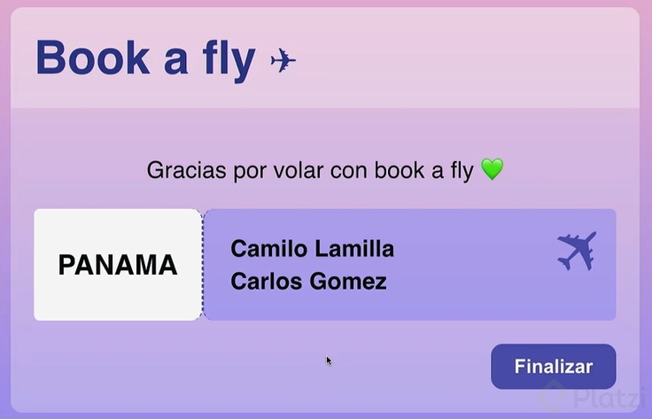 El flujo de la aplicación contempla varias etapas clave para completar el proceso de reserva de tickets: