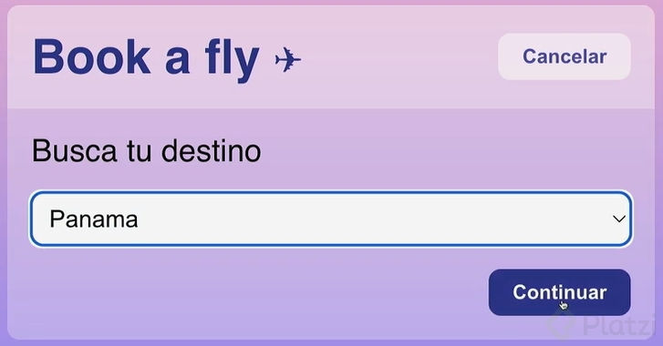 - Buscar vuelos (seleccionar país): Selecciona un país de destino disponible.
