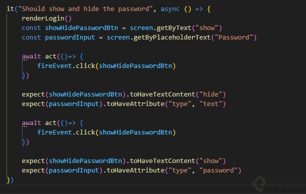 Al desarrollar una aplicación, es posible integrar funcionalidades adicionales para mejorar la experiencia del usuario. Por ejemplo, en nuestro caso de uso, añadir una prueba para el botón Show en el formulario de login enriquecería nuestras pruebas.