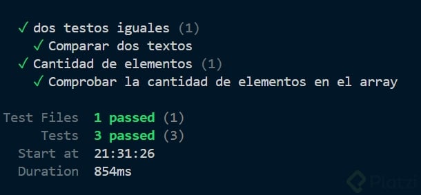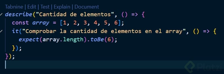 Importamos desde Vitest las estructuras de describe, it y expect. Estas herramientas nos ayudarán a organizar y ejecutar los tests.