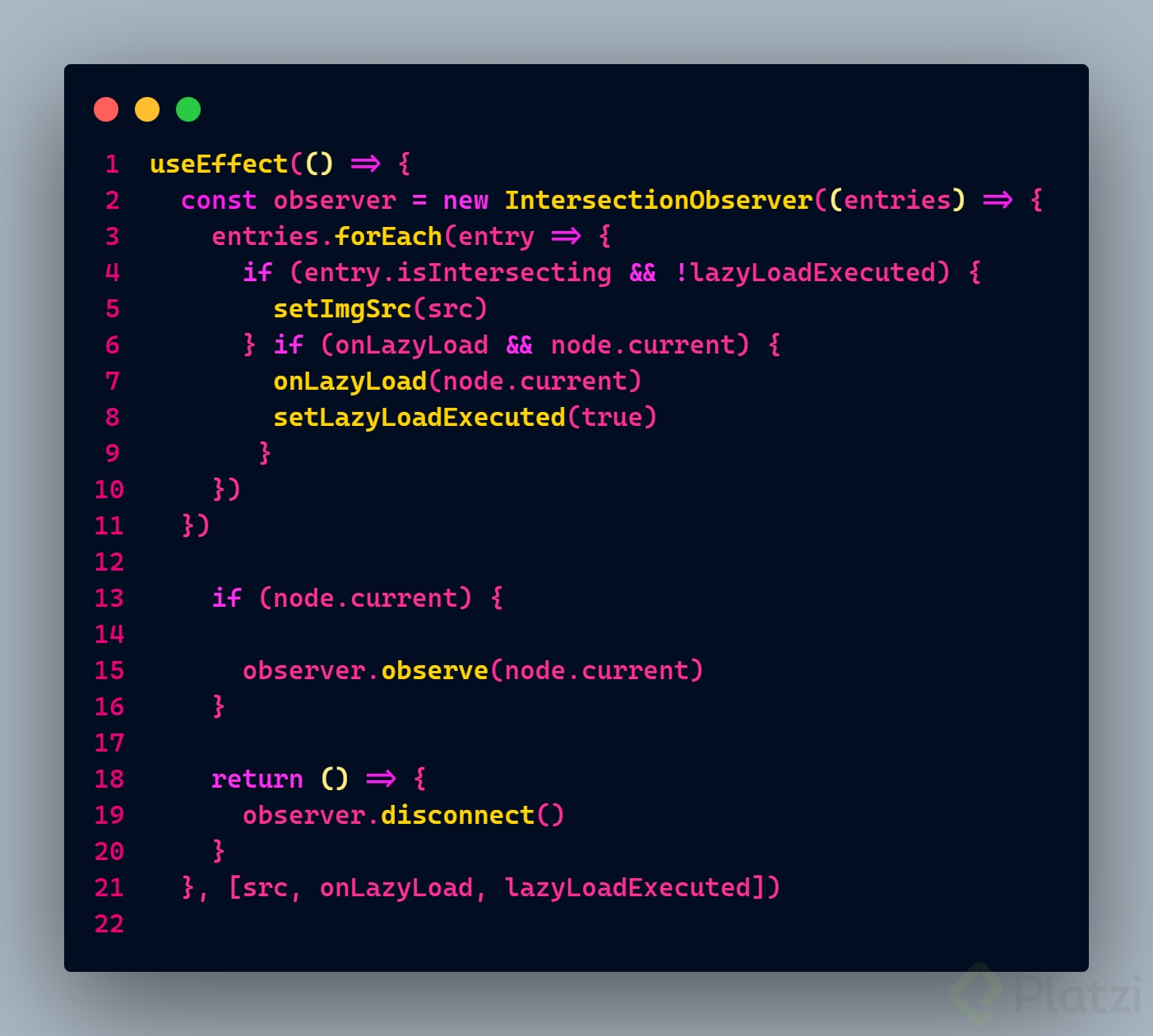 El segundo reto se deriva de asegurarnos de que onLazyLoad solo se ejecute una vez. En React, puede ser común que ciertos callbacks se activen múltiples veces por diversos motivos, como múltiples renders. Sin embargo, queremos evitar la ejecución repetida que puede llevar a comportamientos inesperados.