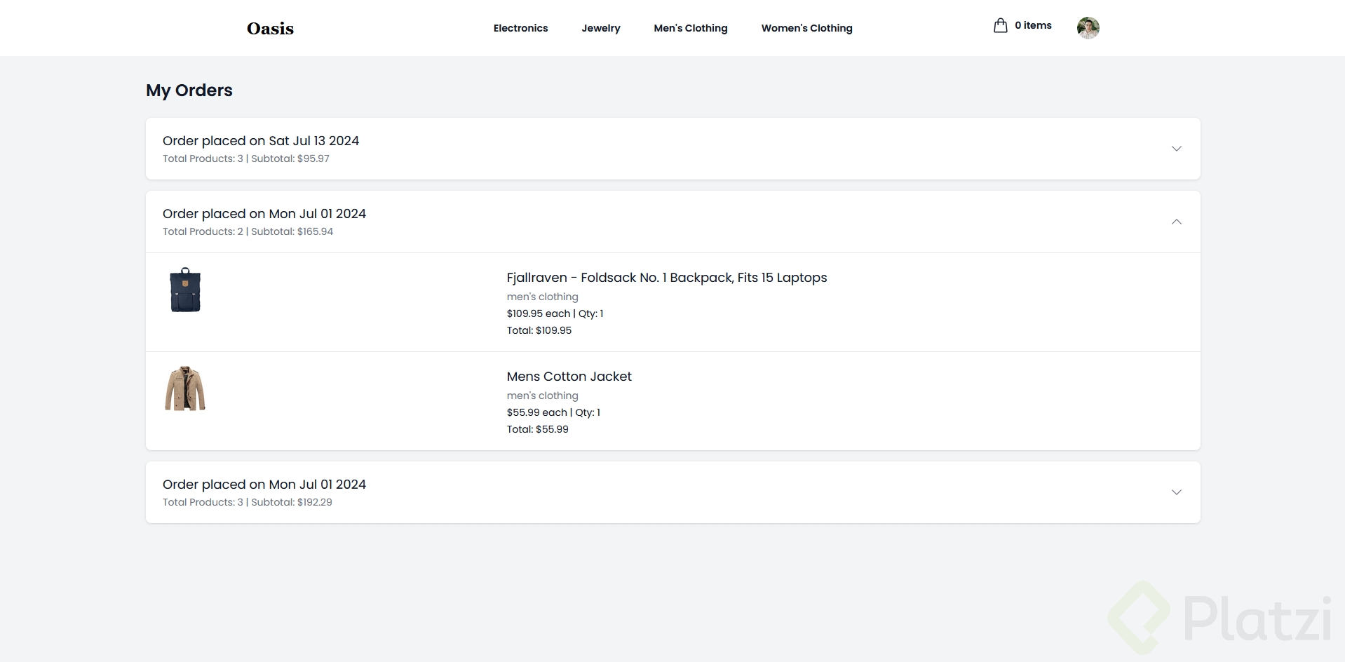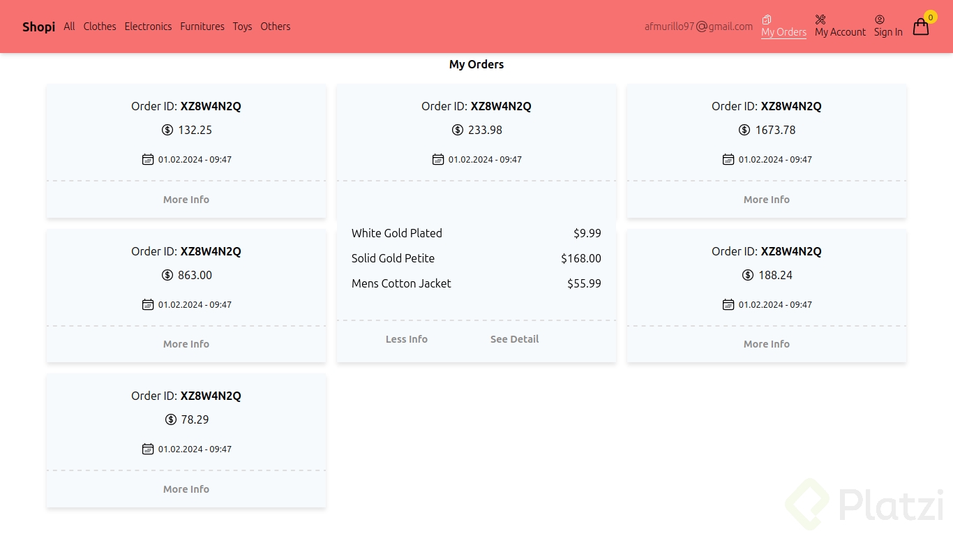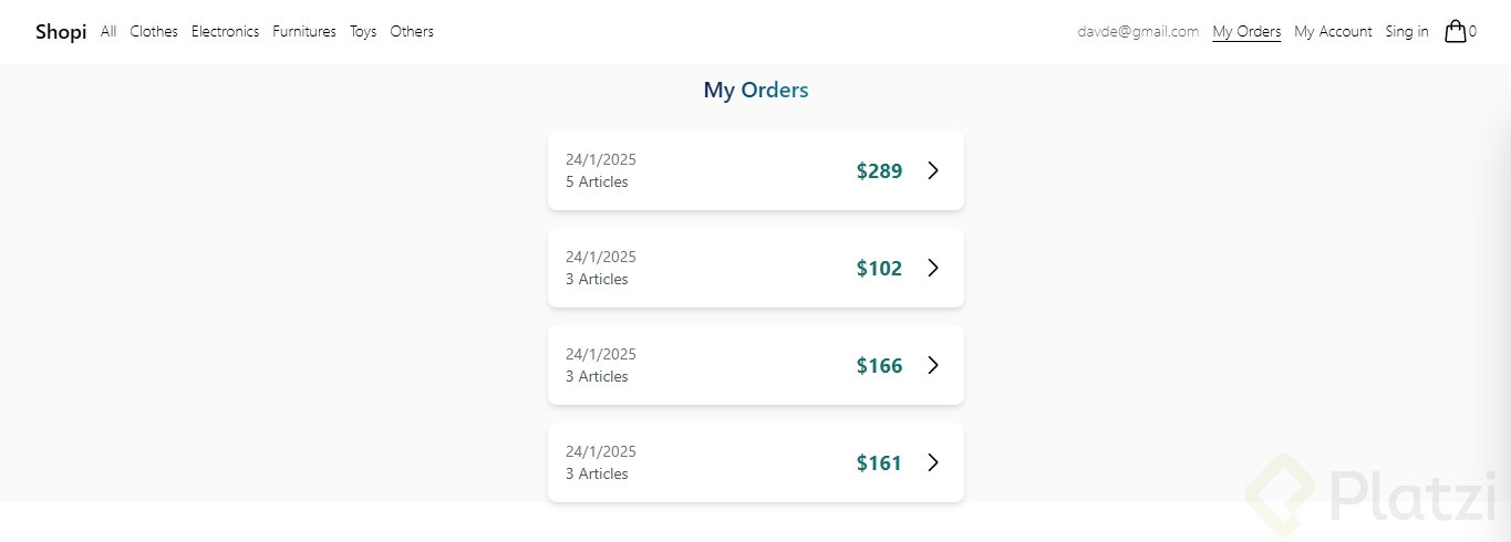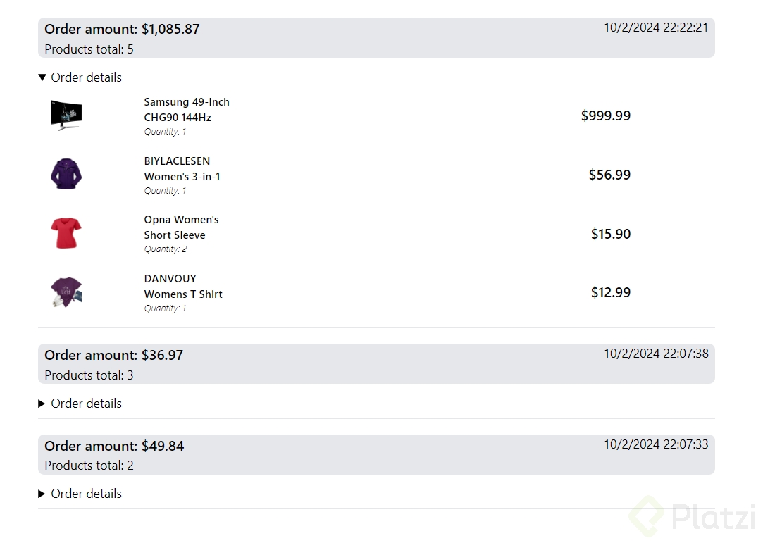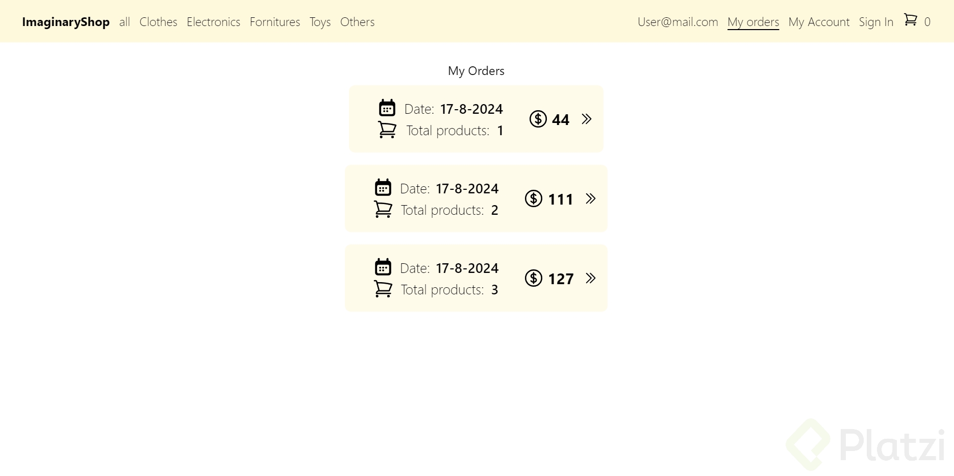 Al final del proceso de estilización, el componente debe funcionar correctamente, exhibiendo todas las órdenes de manera clara, separando visualmente las diferentes órdenes. Se realizan pruebas múltiples, verificando que al hacer clic en las órdenes se despliega la información correcta.