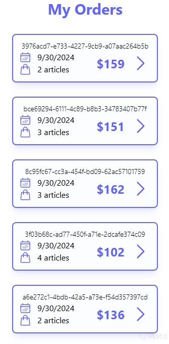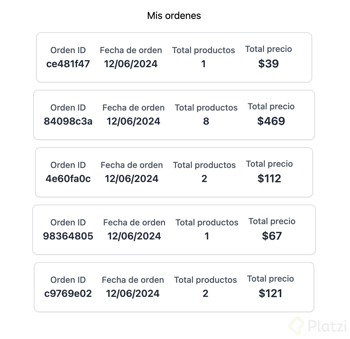 Para mantener la consistencia visual, es importante redondear los bordes con rounded LG. También, añadimos margin-bottom para evitar que las tarjetas se solapen entre sí cuando hay múltiples órdenes.