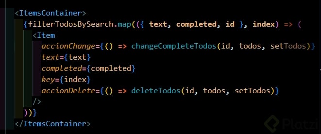 - Emparejar el estado: Vincular los botones de completar o eliminar con los elementos específicos a los que corresponden.