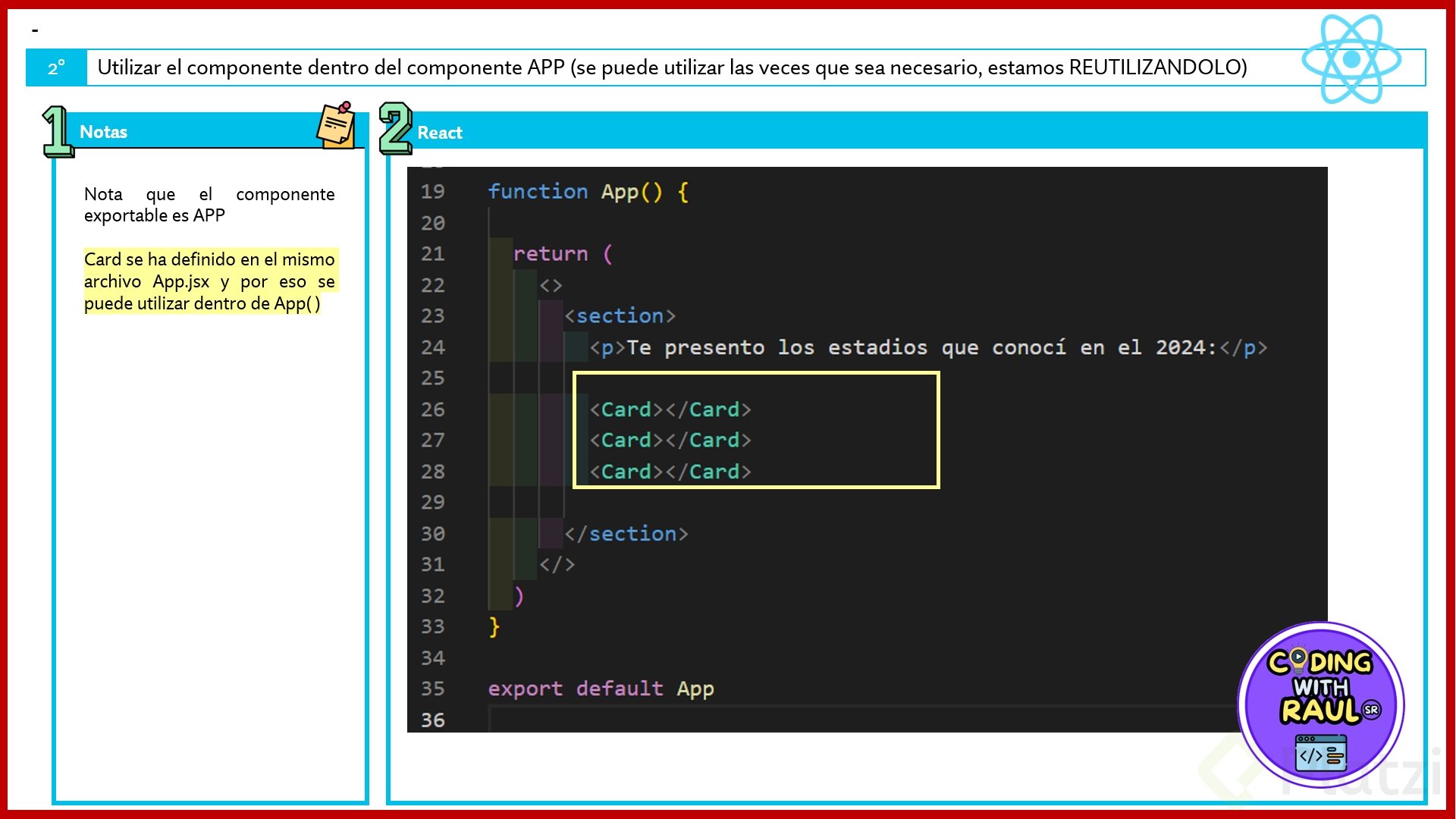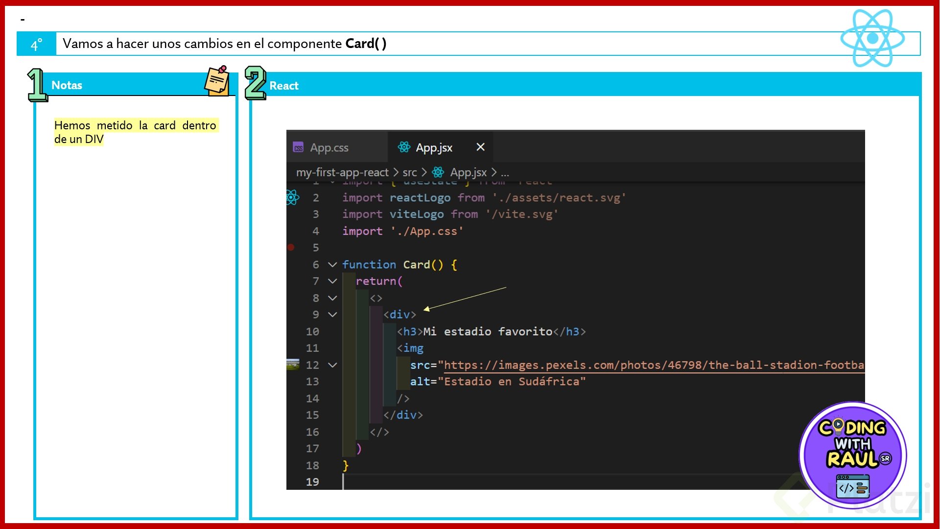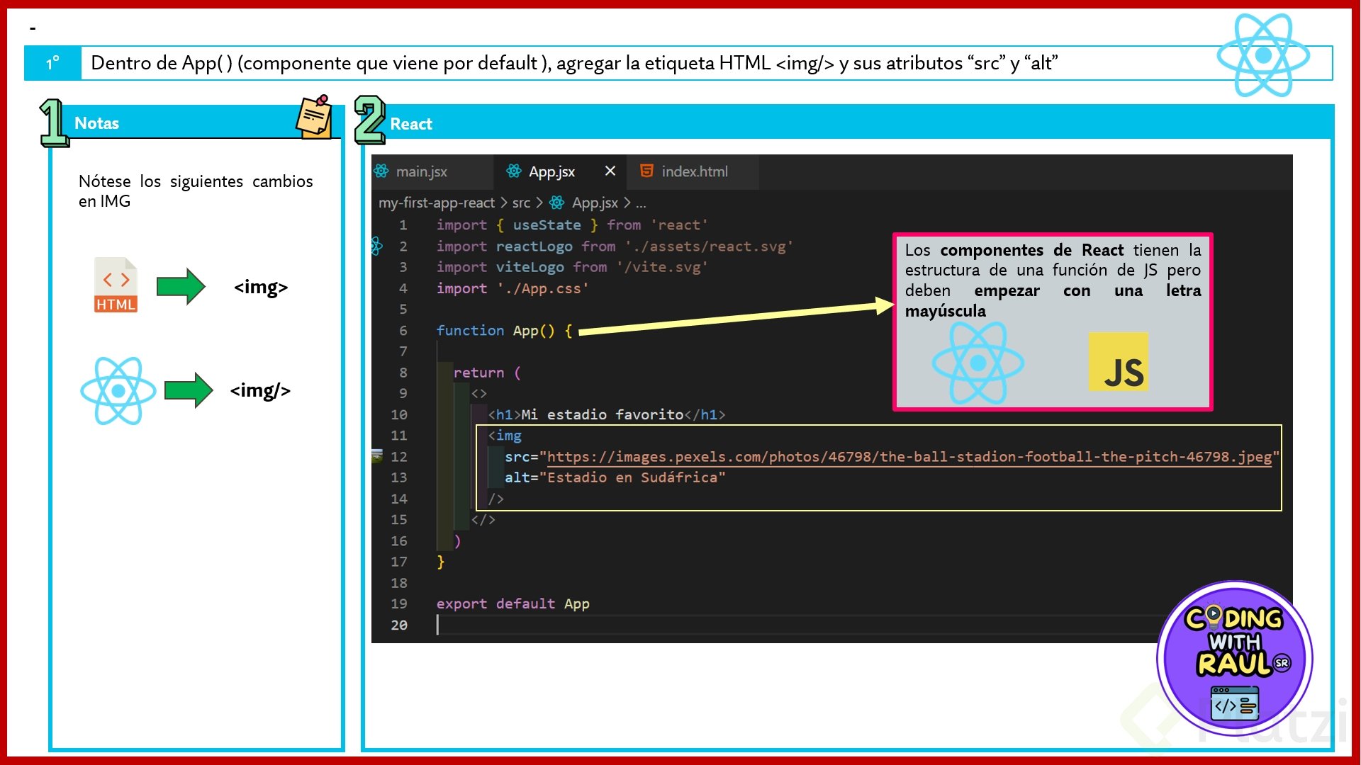 Esta sintaxis híbrida entre JavaScript y HTML es lo que hace que React sea tan poderoso y a la vez accesible para desarrolladores que ya conocen estas tecnologías.