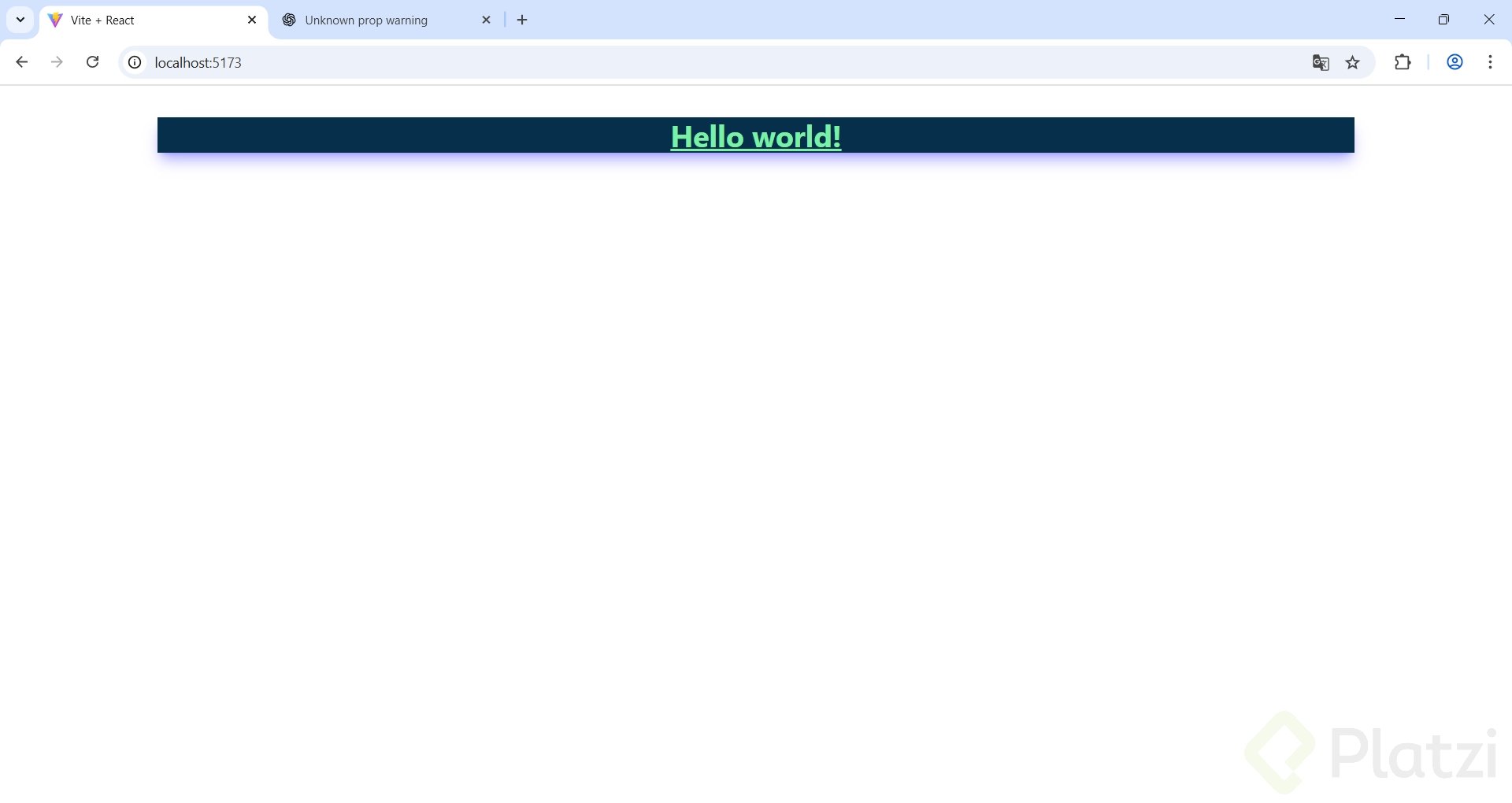Al guardar estos cambios y revisar el navegador, veremos nuestro texto "Hello world" con los estilos aplicados mediante las clases de Tailwind CSS.