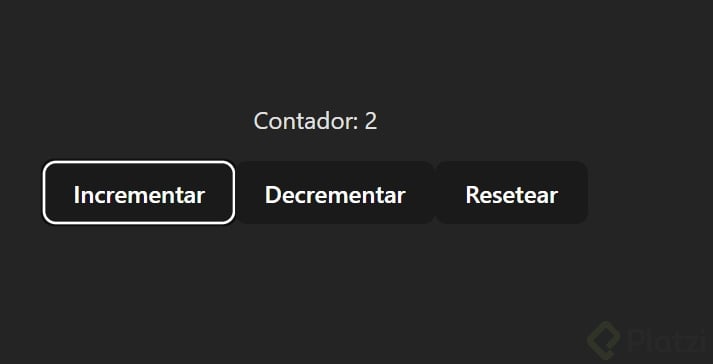 - Cada botón dispara una acción diferente mediante la función dispatch
