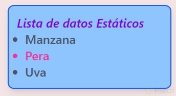 Al guardar estos cambios y revisar el navegador, veremos una lista con las tres frutas que definimos en nuestro componente estático.