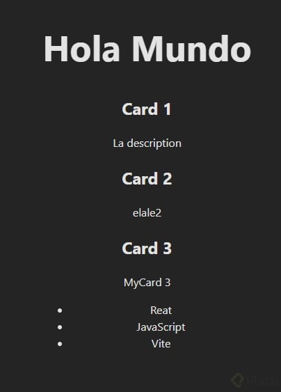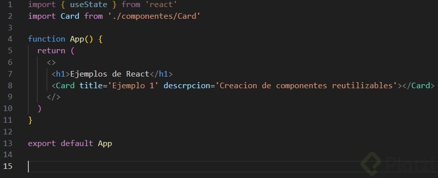 Vamos a crear un componente de tarjeta simple que acepte un título y una descripción como props: