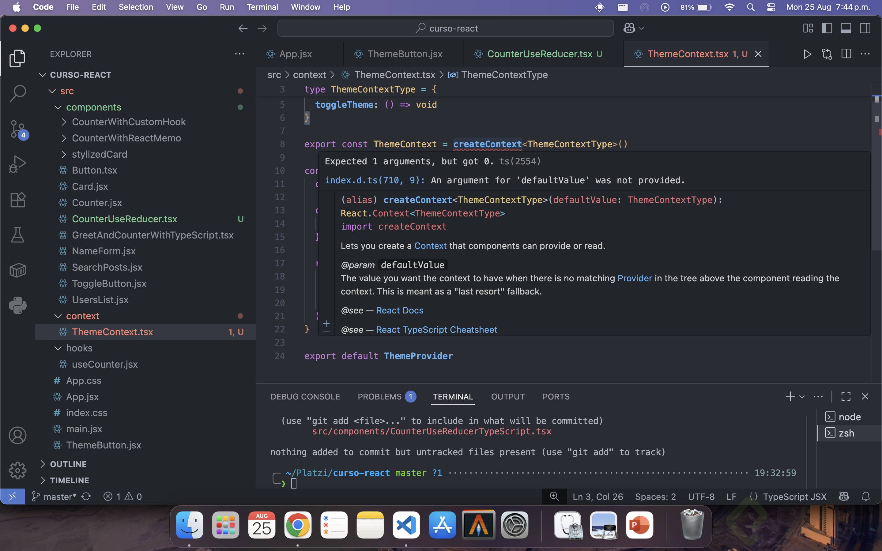 ThemeContextTypeque especifica la estructura del contexto - Un valor inicial para el contexto que cumple con el tipo definido