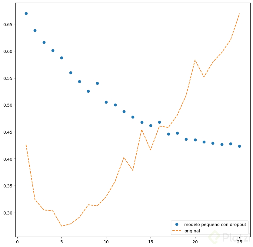 Observarás que este modelo más modesto generaliza mejor y reduce el overfitting.