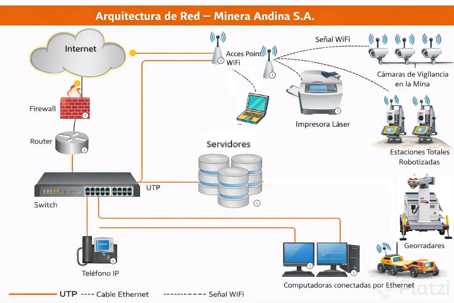 Sus componentes incluyen routers, switches, hubs, servidores, computadoras de escritorio y portátiles, firewalls, teléfonos IP, puntos de acceso inalámbricos, routers inalámbricos y diferentes tipos de medios de comunicación.