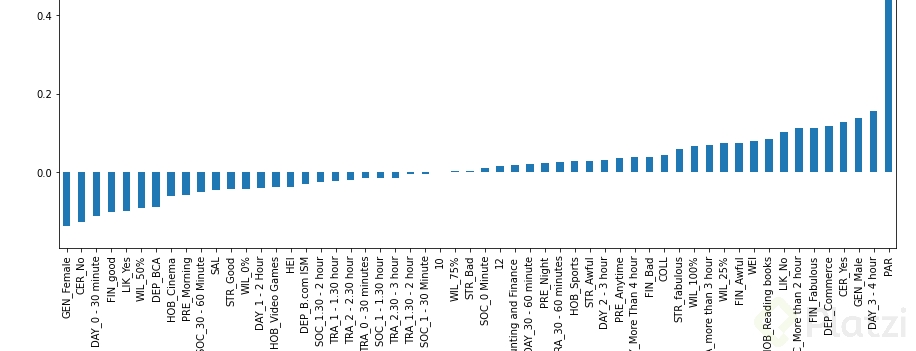 En el ejemplo, se utiliza un gráfico de barras para visualizar las correlaciones, que hemos ordenado de manera ascendente para facilitar su interpretación.