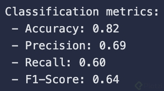 En nuestro ejemplo, logramos una precisión del 79%. Este valor puede variar dependiendo de diversos factores, como ajustes en el preprocesamiento de datos o variaciones en los datos mismos.