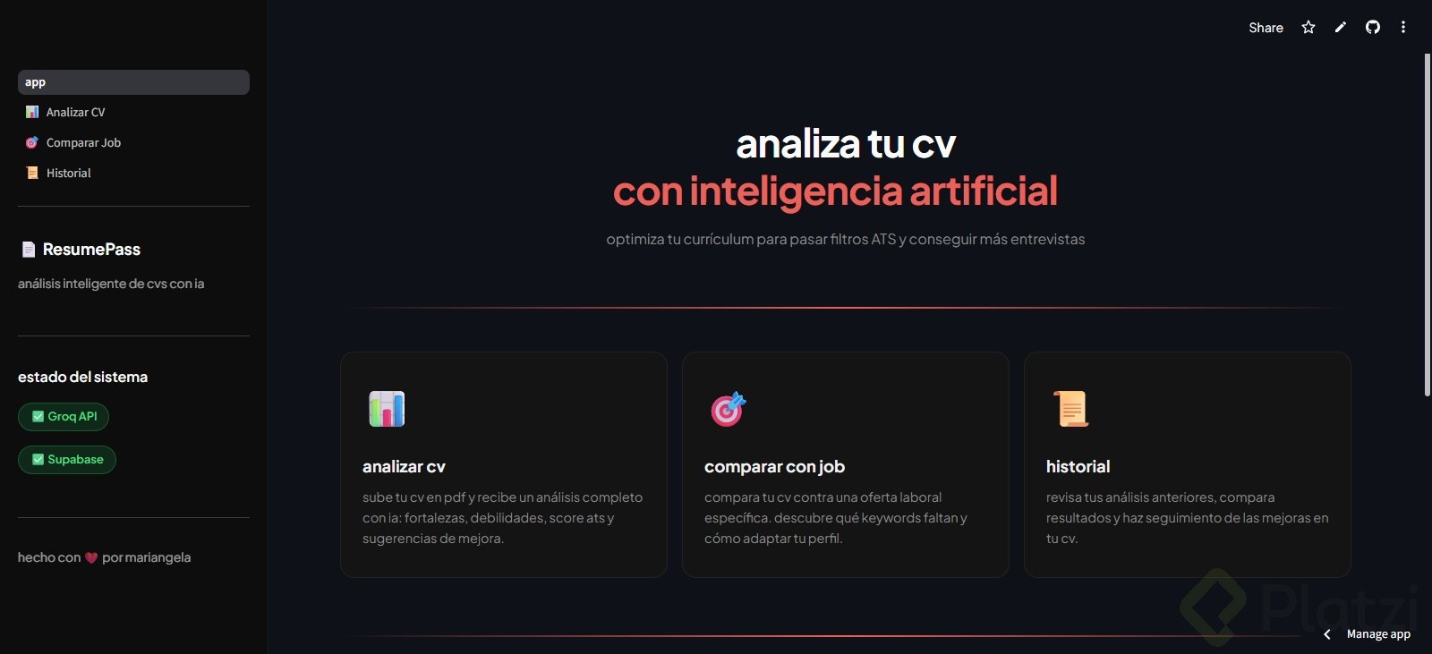- Agrega un link público para que Platzi y la comunidad puedan acceder y ver la solución en funcionamiento.