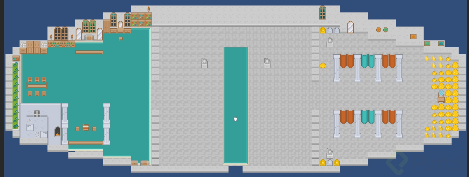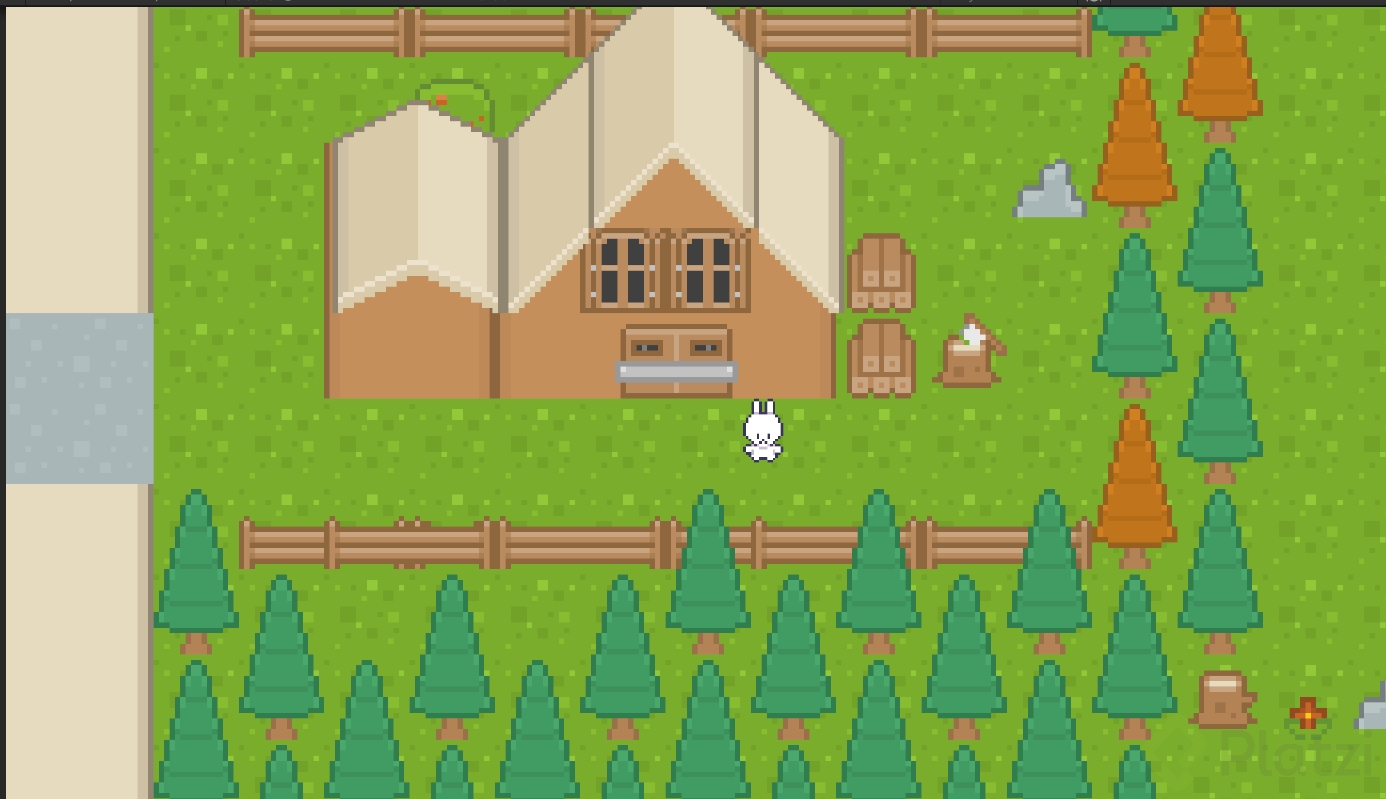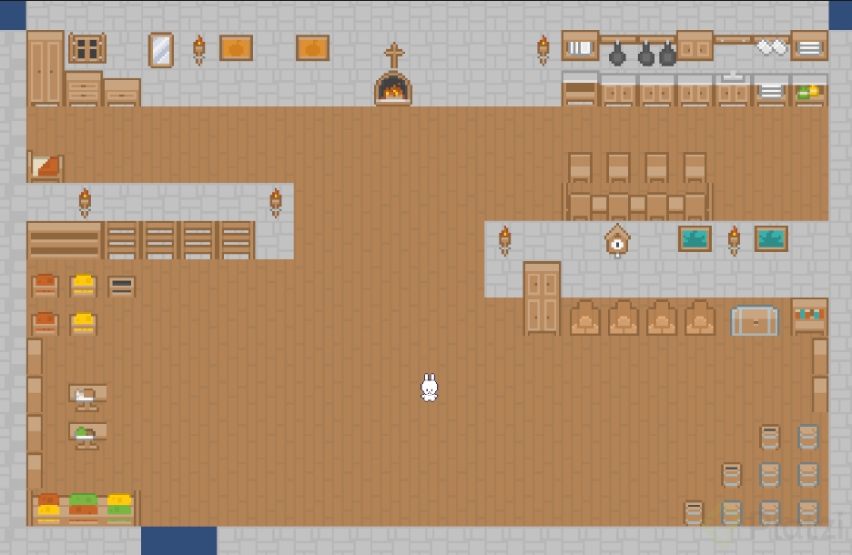 El siguiente gran paso es crear la escena del interior. Al igual que con la exterior, se deben definir bien las capas y los tilesets. Aquí es donde puedes dejar volar tu imaginación: piensa en el suelo, las paredes, muebles, decoraciones y, por supuesto, una puerta de entrada.