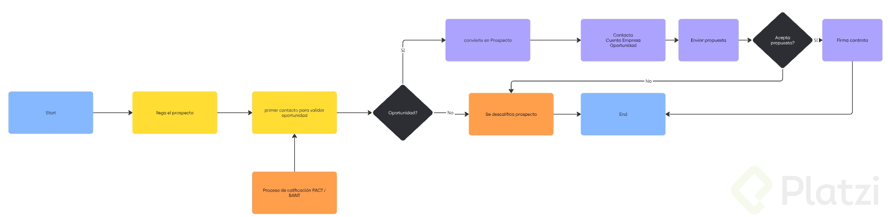 - Descalificación del prospecto: Si luego de la evaluación, se concluye que no hay una oportunidad, se procede a descalificar al prospecto.