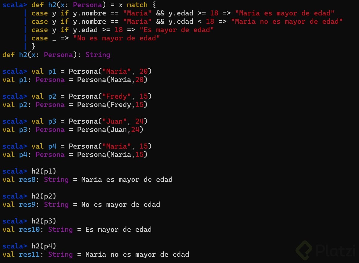 case Persona("María", edad) if edad < 18 => "María menor de edad"