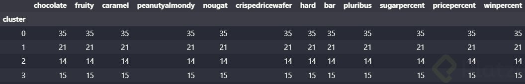 En esta ocasión, vamos a configurar nuestro modelo para 4 clusters. Esta decisión se basa en la idea ficticia de una tienda que desea organizar sus dulces en 4 estanterías, basándose en sus similitudes.