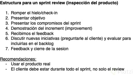 Facilita la inspección del producto: el cliente debe poder interactuar directamente con el incremento del producto. Evita depender de demos o videos, ya que pueden dar una percepción errónea del progreso real.