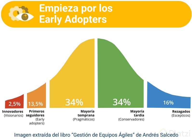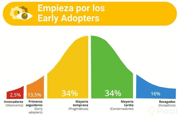- Innovadores (2.5%): son aquellos individuos curiosos y abiertos a probar cosas nuevas desde el inicio.