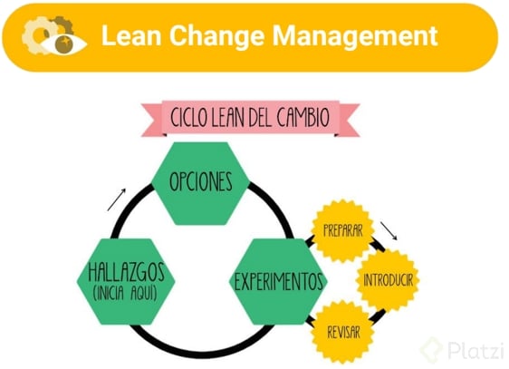 Lean Change Management es una práctica ágil que ofrece un enfoque para gestionar el cambio cultural a través de experimentos controlados. El proceso implica: