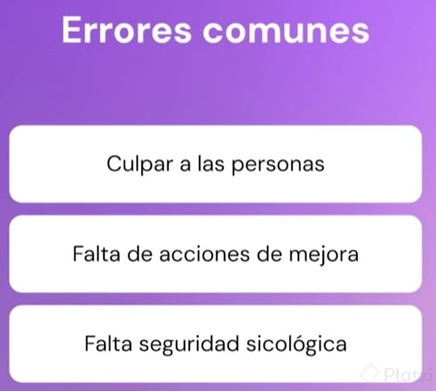 - Culpar a las personas: deriva en críticas personales en lugar de mejorar procesos.