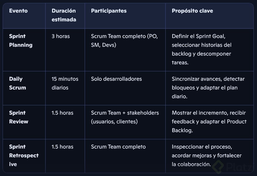 Eventos de Scrum: sprint, planning, daily, review y retrospective